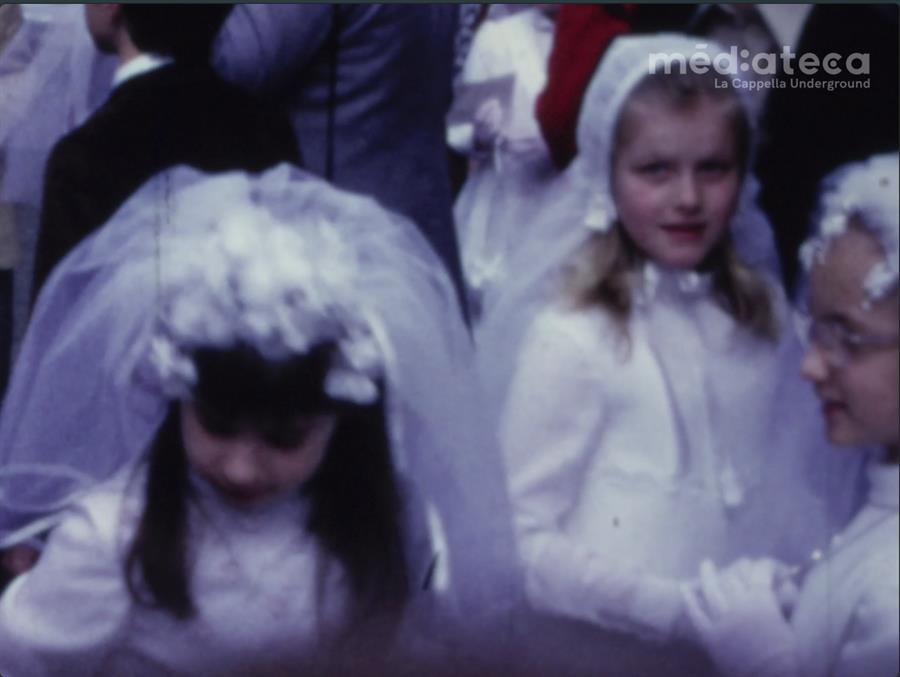 Indicazioni sul soggetto:Comunione di Sonia. Sonia cammina in Via Chiadino (Rione San Luigi, Trieste) con la mamma verso la Chiesa Beata Vergine delle Grazie in occasione della sua Comunione; ingresso in chiesa di tutti i bambini; cerimonia; passeggiata di Sonia con Erich, la mamma e lo zio a Barcola dopo la cerimonia.