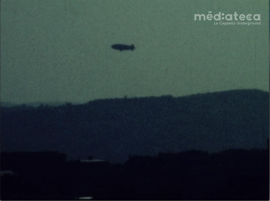 Indicazioni sul soggetto:Ripresa dal giardino di casa del passaggio del dirigibile Goodyear sopra Trieste. Donatella gioca su una giostra nel giardino di casa; Tiziana trasporta il fratello Pierpaolo con una cariola.